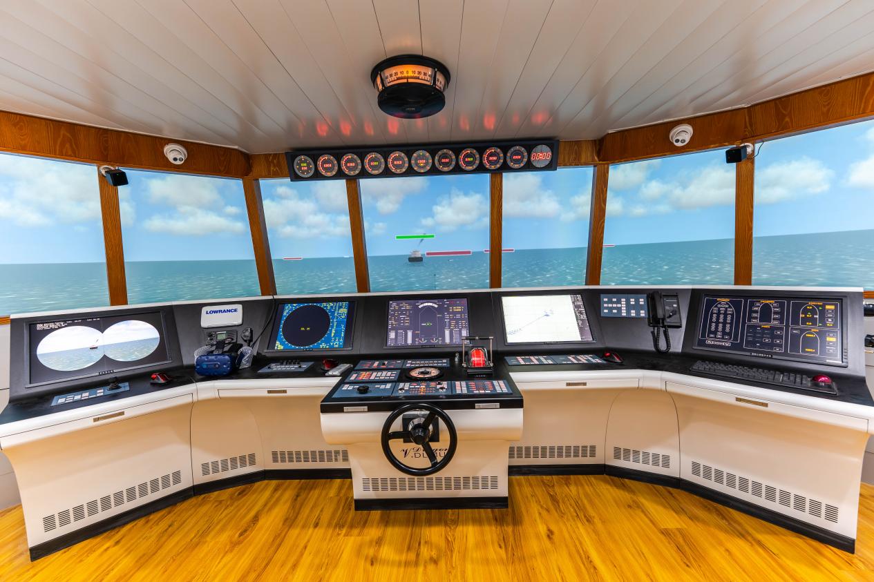 目前,航海虚拟仿真实训基地建有航海模拟器实训室、轮机模拟器实训室、通讯导航仿真实训室、船舶模型室等共10多个模拟实训室,建筑面积1200平方米,资产总值共计1000余万元。该基地配有船舶操舵系统、航海英语听力与会话训练系统、货物配积载系统、电子海图显示与信息系统、船舶主机动力系统等各类实训教学虚拟仿真软件,可同时满足航海技术、轮机工程技术、船舶电子电气技术等多个航海类专业的实训教学需求。
