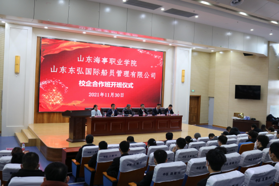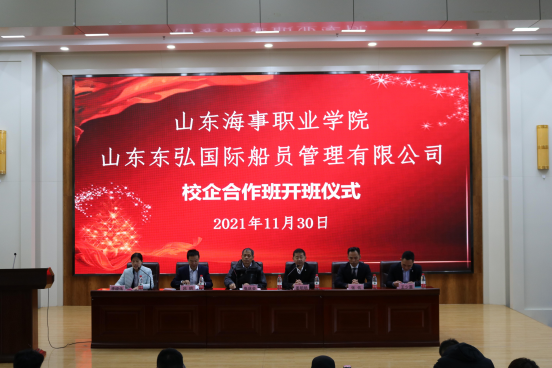 为深化产教融合校企合作,推动现代职业教育高质量发展,11月30日下午,今年会jinnianhui与山东东弘国际船员管理有限公司在图书馆报告厅举行校企合作东弘订单班开班仪式。东弘国际海事集团董事长姜明旸、培训总监张伟等企业领导,学校副校长张庆会、副校长/今年会jinnianhui院长吕明、今年会jinnianhui教师及“东弘校企订单班”全体学生参加了开班仪式。