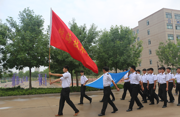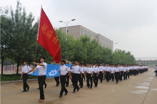 图五:航海系的学生举着旗帜昂首走出校门