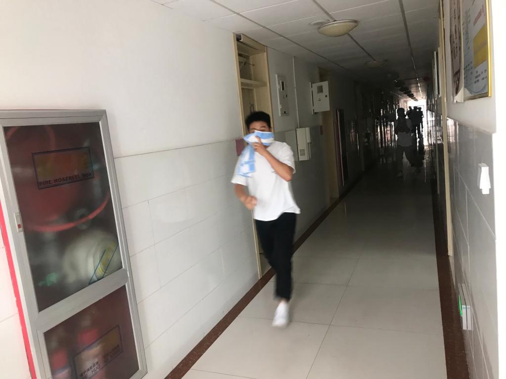 下午16:00,消防演习正式开始。当消防警报哨声吹响,同学们用湿毛巾捂住口鼻,弯着腰迅速从楼上井然有序的奔向楼前空旷处。辅导员老师及学生会成员分布在各楼层,防止踩踏事故的发生。在大家都安全集合完毕后,王涛涛老师向全体学生提出了消防意识要点:首先,同学们平时一定要保持良好的消防安全习惯,禁止将火种带入教学楼、寝室等人员聚集场所,从根源消除火灾隐患。当有火灾发生时,应第一时间拨打辅导员或值班老师电话,报告火情,视情况使用灭火器进行灭火,如火情严重则马上拨打火警电话向消防部门求救。面对火灾一定要冷静、镇定、不慌乱,采取正确的自救、求救措施。随后,演练后讲解了有关火灾现场的应急处置方案,灭火器的使用方法和注意事项。并由学生演示了灭火器的使用;在认真听讲及观摩后,学生们亲自体验了现场灭火的过程,面对熊熊燃烧的火堆,同学们表现的十分沉着,熟练地按照灭火的步骤和方法,迅速将烟头引起的浓烟大火成功扑灭,做到了冷静沉着的面对突发现象,成功快速的扑灭大火的消防标准。
