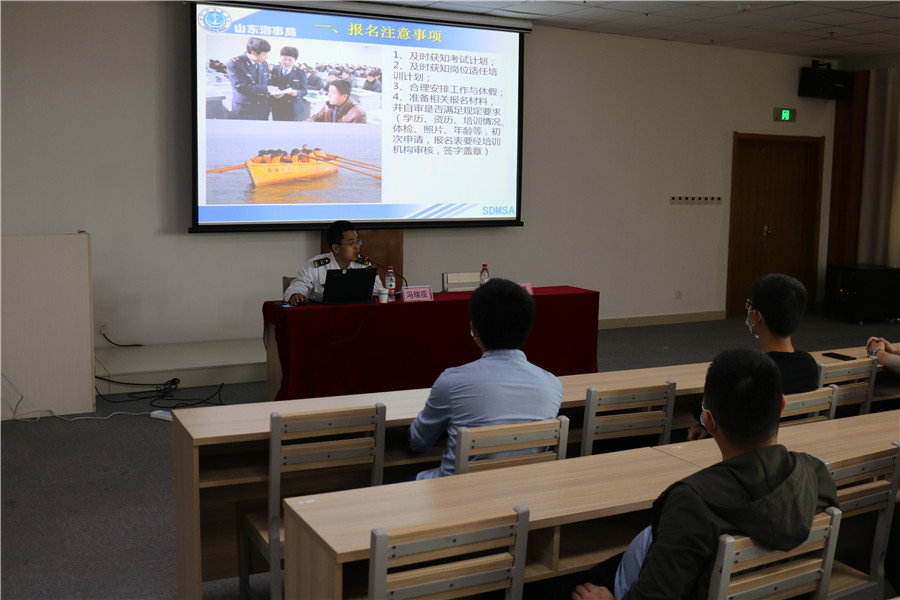 5月13日下午,山东海事局船员考试中心“考官进校园”活动走进今年会jinnianhui,给社会培训学员带来题目为“快乐学习、轻松工作”的专题讲座。