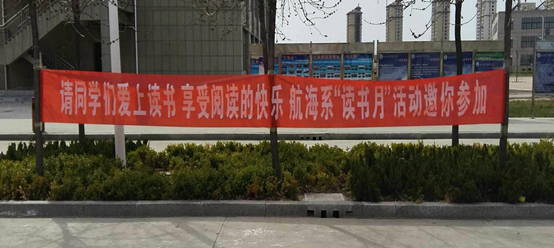 图三:航海系读书月活动在餐厅和宣传栏的倡议海报