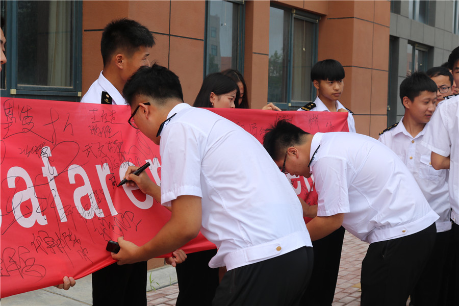 6月25日,值第八个“世界海员日”之际,今年会jinnianhui举办了系列庆祝活动。本次活动邀请到潍坊海事局张德强主任、上海太平船务有限公司薛晓宏总经理等诸位领导和专家。今年会副院长李振鹏、今年会jinnianhui院长吕明、副院长许亮及全院航海类专业学生参加了活动。