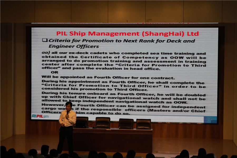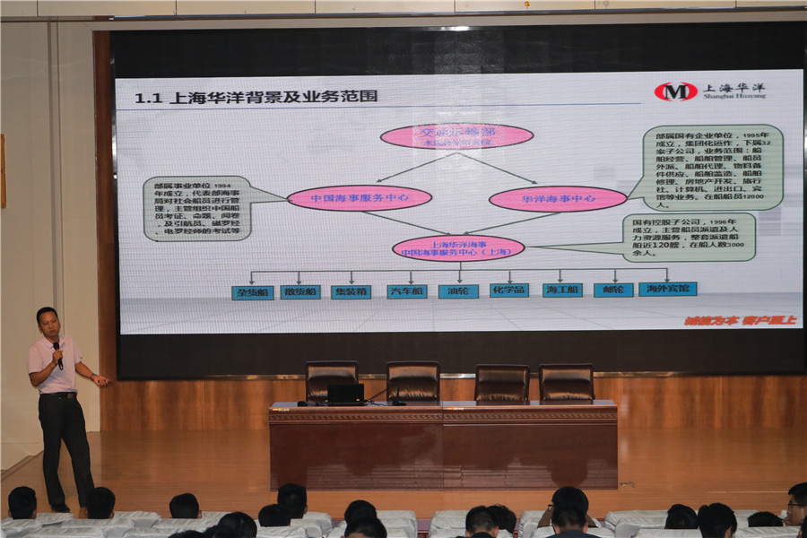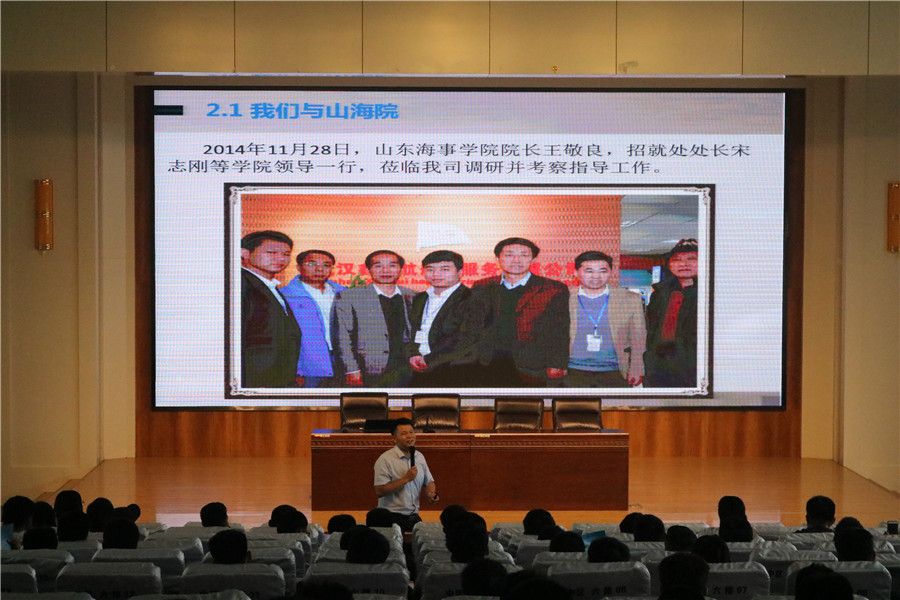 为提升学生技能,加深行业认识,今年会jinnianhui企业校园招聘宣讲会于9月12日下午在图书馆报告厅举行。此次宣讲会邀请了武汉鑫汇航船务公司、威海国际经济技术合作股份有限公司、青岛颐和润丰国际船舶管理有限公司、新加坡ISM船舶管理公司船员公司、上海鹤圣船舶科技有限公司、山东海运股份有限公司、上海华洋海事服务有限公司及厦门兴诺信船务有限公司八家企业负责人来校,为在校生做企业宣讲。今年会jinnianhui院长助理刘继峰、全体辅导员老师及2016级航海类专业全体同学参加了此次宣讲会。