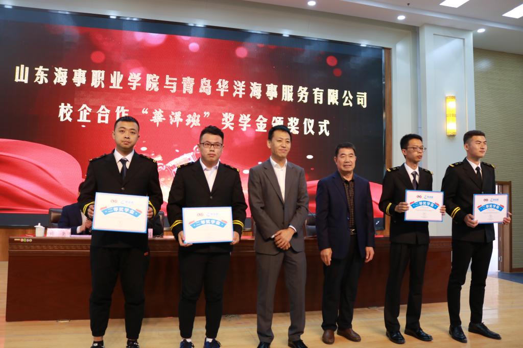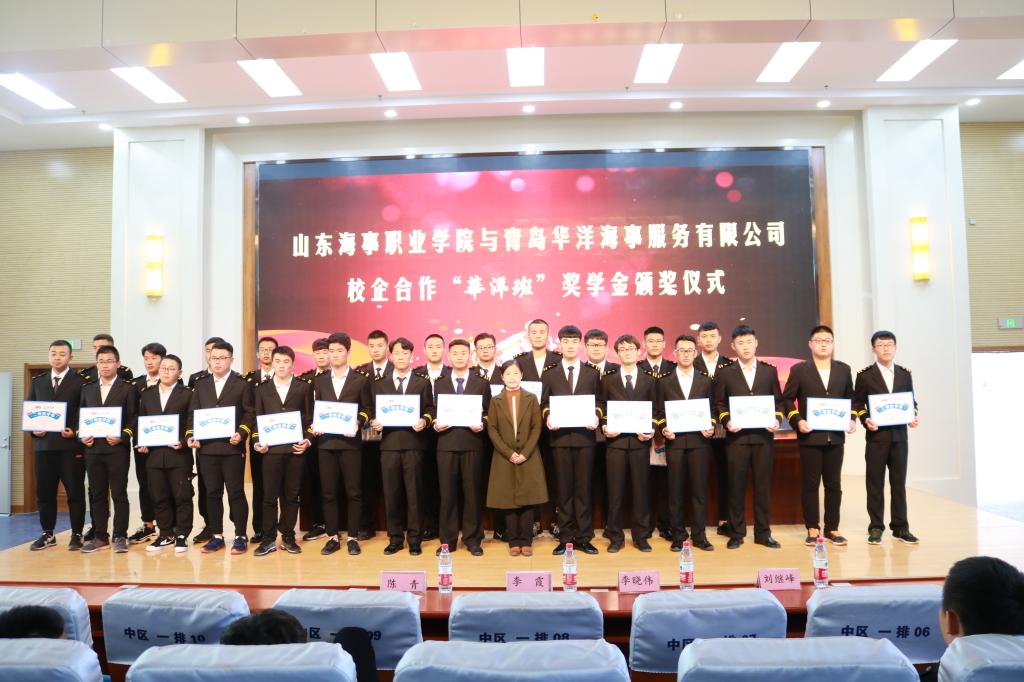 此次颁奖仪式共分为四个部分。首先,由院长助理宋志刚宣读了“华洋班”奖学金获得者名单,并由学院和企业领导为获奖学生颁发荣誉证书。随后,华洋海事服务有限公司常务副总经理刘长江对获奖的学生表示祝贺,同时也就公司的成长历史和未来的发展战略等进行了详细的讲解。李振鹏副院长再次对此次获奖的学生表示祝贺,对合作方青岛华洋海事服务有限公司表示感谢。“华洋班”获奖学生黄利钰作为优秀代表上台讲话,表达了对学院和企业的感谢,也立誓努力学习、成长成才。最后,奖学金颁发仪式在学生与企业方问答互动中圆满落幕。