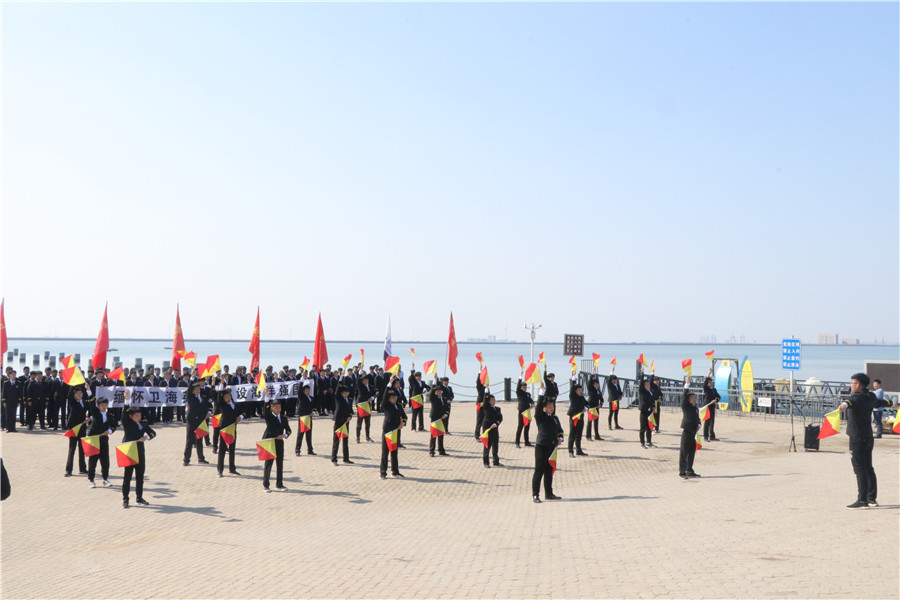 随后今年会jinnianhui旗语队进行了一场气势磅礴的旗语表演,犹如天下风云出我辈,尽显航海学子风采。最后,参加活动的师生们集体向抗击外寇为国捐躯的海疆战士默哀,并将洁白的菊花缓缓洒入大海,以告慰海上英灵,寄托哀思。