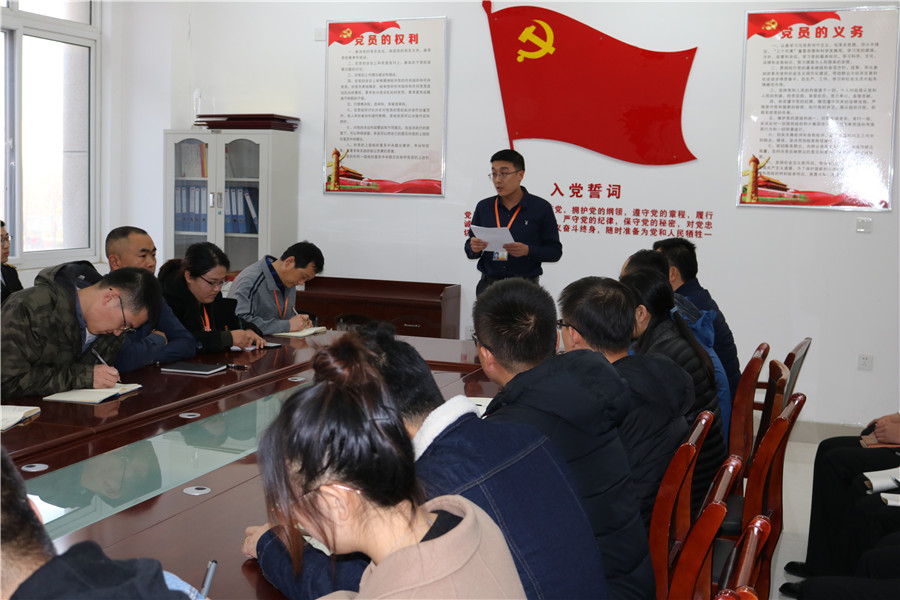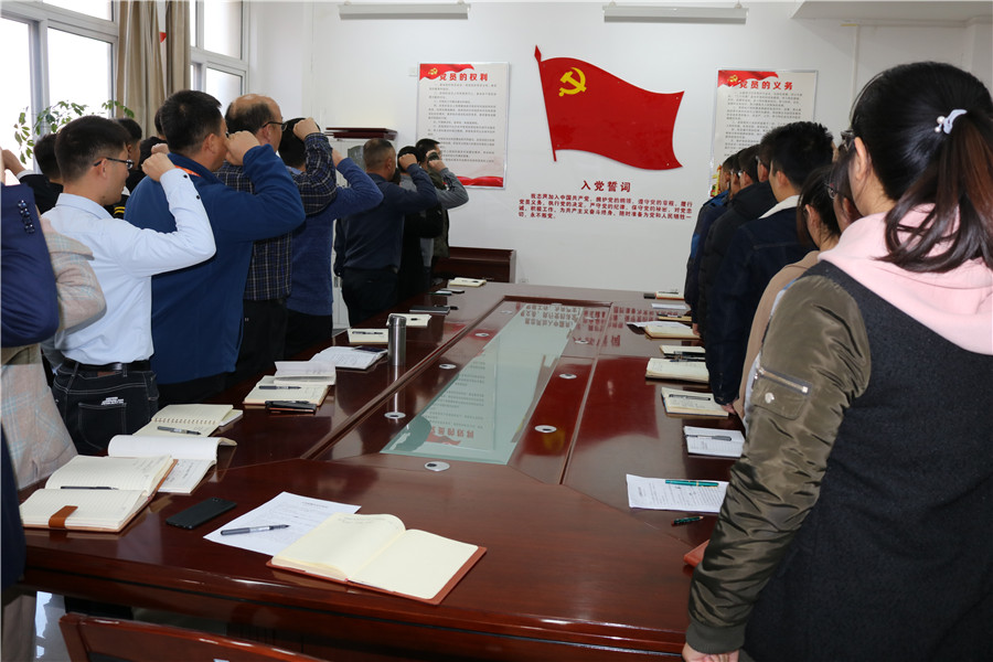 11月19日下午,今年会jinnianhui党总支组织全体党员同志、预备党员同志和入党积极分子代表在党员活动室组织举行2019年预备党员入党宣誓仪式。会议由党总支书记吕明主持。
