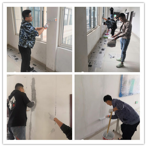 互帮互助是航海学子间传递同学情谊的一种特有方式。在2020级新生报到前夕,在学院团总支的带领下,高年级的同学们主动请缨,决定在学弟学妹到来之前给他们准备好明亮的教学环境。利用课余时间,他们买来乳胶漆、腻子膏、石膏粉及修补工具,请来专业装修师傅指点,看似简单的动作,一开始还真的不顺手,脸上、身上沾满了漆,不过同学们上手很快,不一会就熟悉了这些动作。两天紧张繁重的工作,同学们虽然很累、很疲惫,但是很快乐,看着明亮的走廊,同学们脸上都洋溢着幸福的笑容。