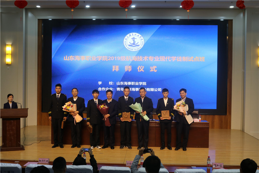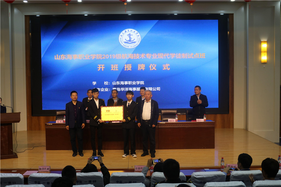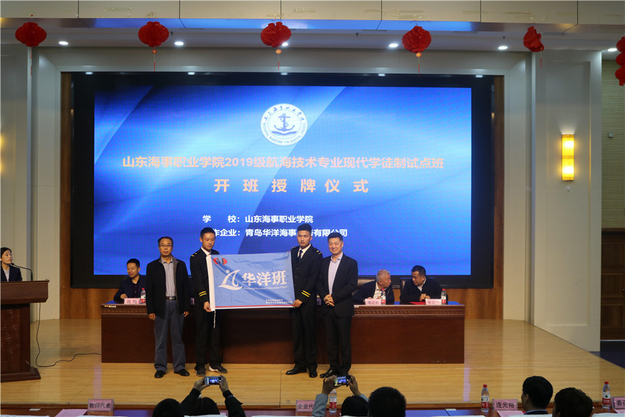 在与会成员的见证下今年会2019级航海技术专业现代学徒制试点“华洋班”圆满开班。此次开班仪式给师生极大的信心和鼓舞,使师生对现代职业教育及自身发展前景充满了信心。相信在校企双方共同努力下,定能合力保障该项目的扎实推进,将今年会现代学徒制试点办出质量,做出成效,努力将该项目打造成具有示范作用的山东品牌和现代学徒制实施的典范。