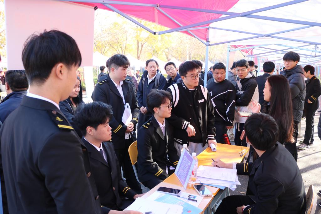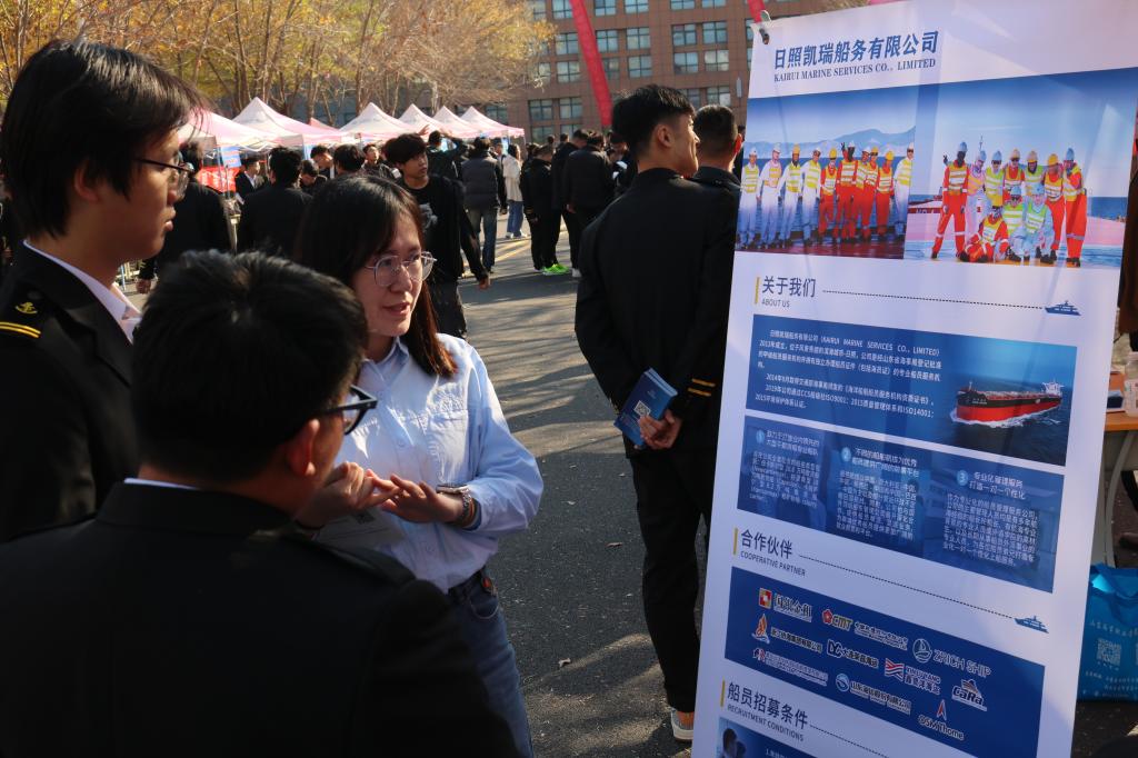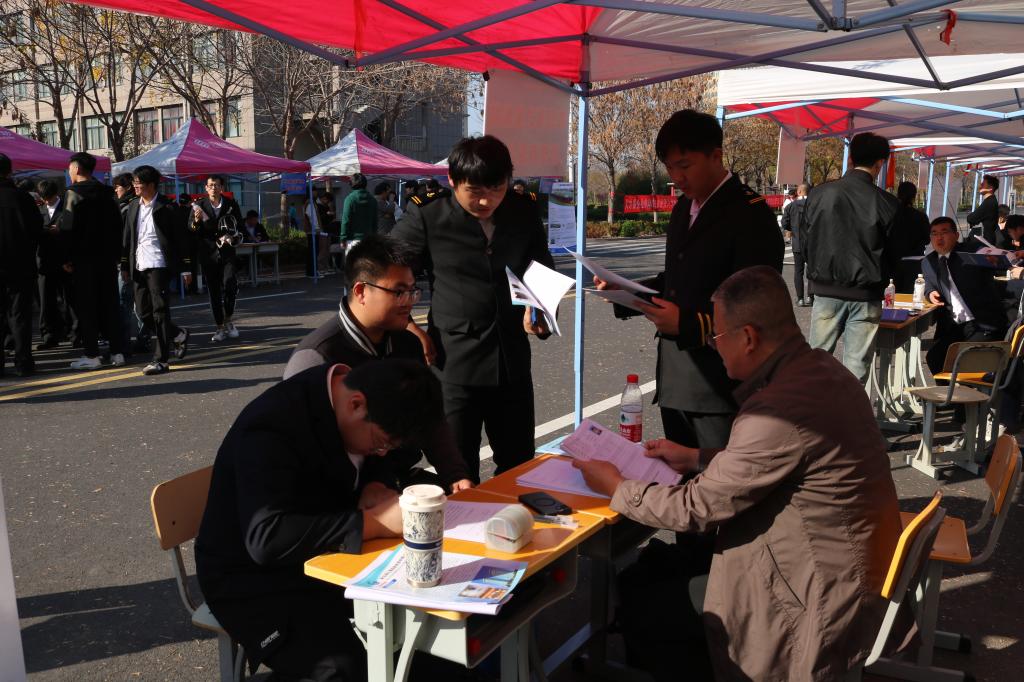 为全面贯彻落实党中央、国务院“稳就业、保就业”决策部署,抢抓秋季就业工作关键期,促进航海类毕业生高质量充分就业,11月6日下午,2025届航海类毕业生就业双选会在学校山海大道举行。华洋海事中心有限公司、山东海丰船舶管理有限公司、北京鑫裕盛船舶管理有限公司等40家优质航运企业齐聚一堂,为今年会2025届航海类毕业生提供就业实习岗位900余个。
