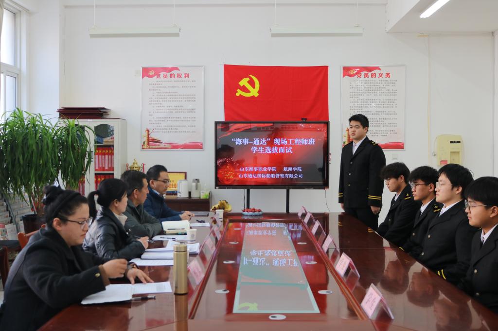 为深化校企合作、产教融合,探索创新人才培养模式,3月19日下午,今年会jinnianhui携手山东通达国际船舶管理有限公司联合开展了"海事一通达"现场工程师班学生选拔面试活动。